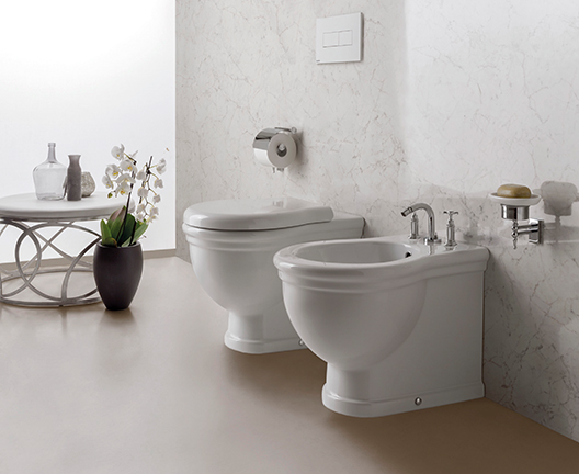 WC und Bidet mit Abstand von der Wand